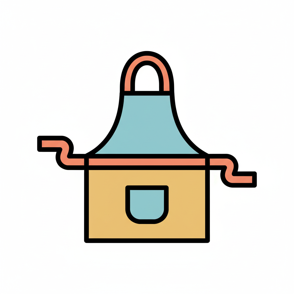 Eine farbenfrohe, stilisierte Schürze mit Tasche.