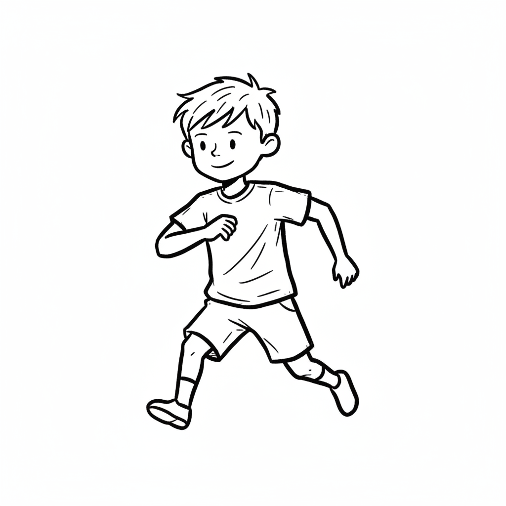 Ein Cartoon-Junge läuft fröhlich mit einem Lächeln.
