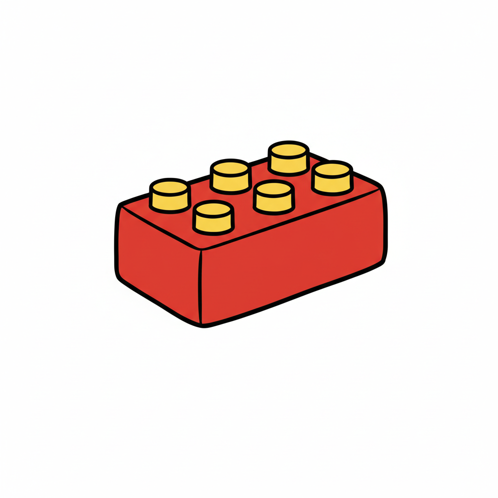 Schlichte Zeichnung von Bausteinen in verschiedenen Formen, einschließlich Haus und Auto.