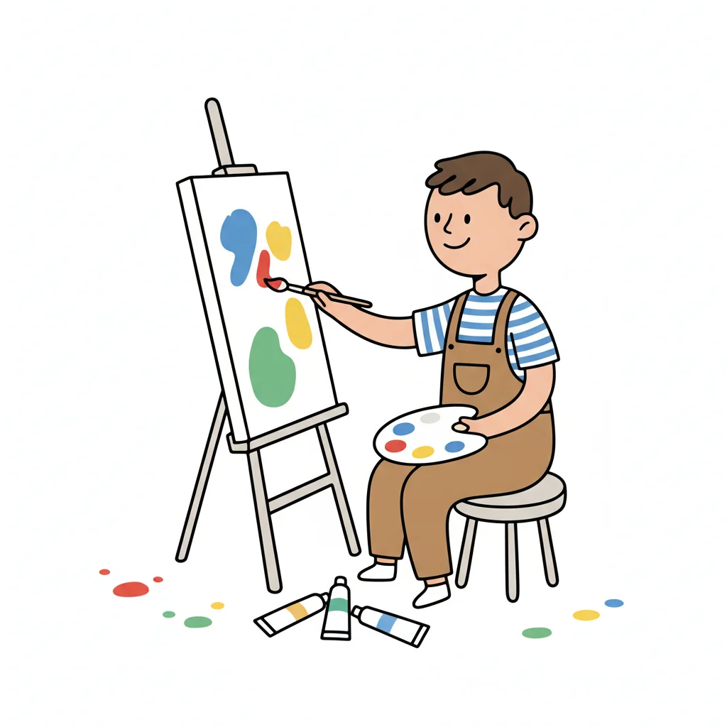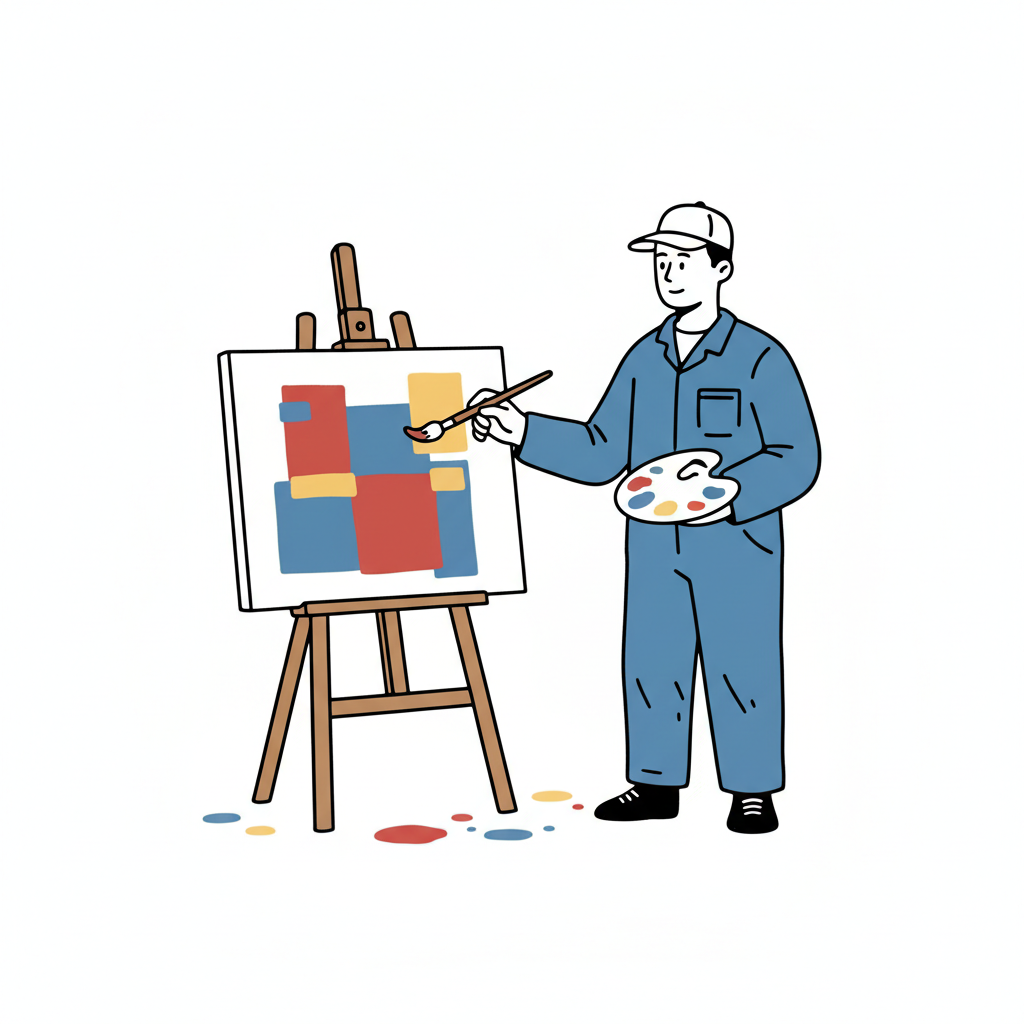 Ein Künstler malt an einer Leinwand mit einer Farbpalette.