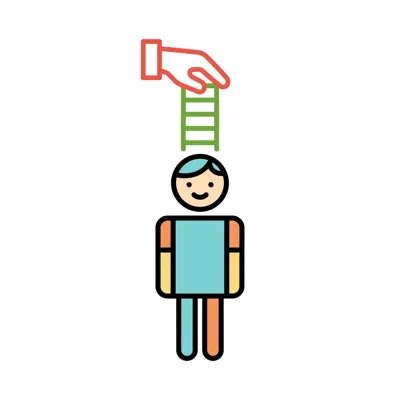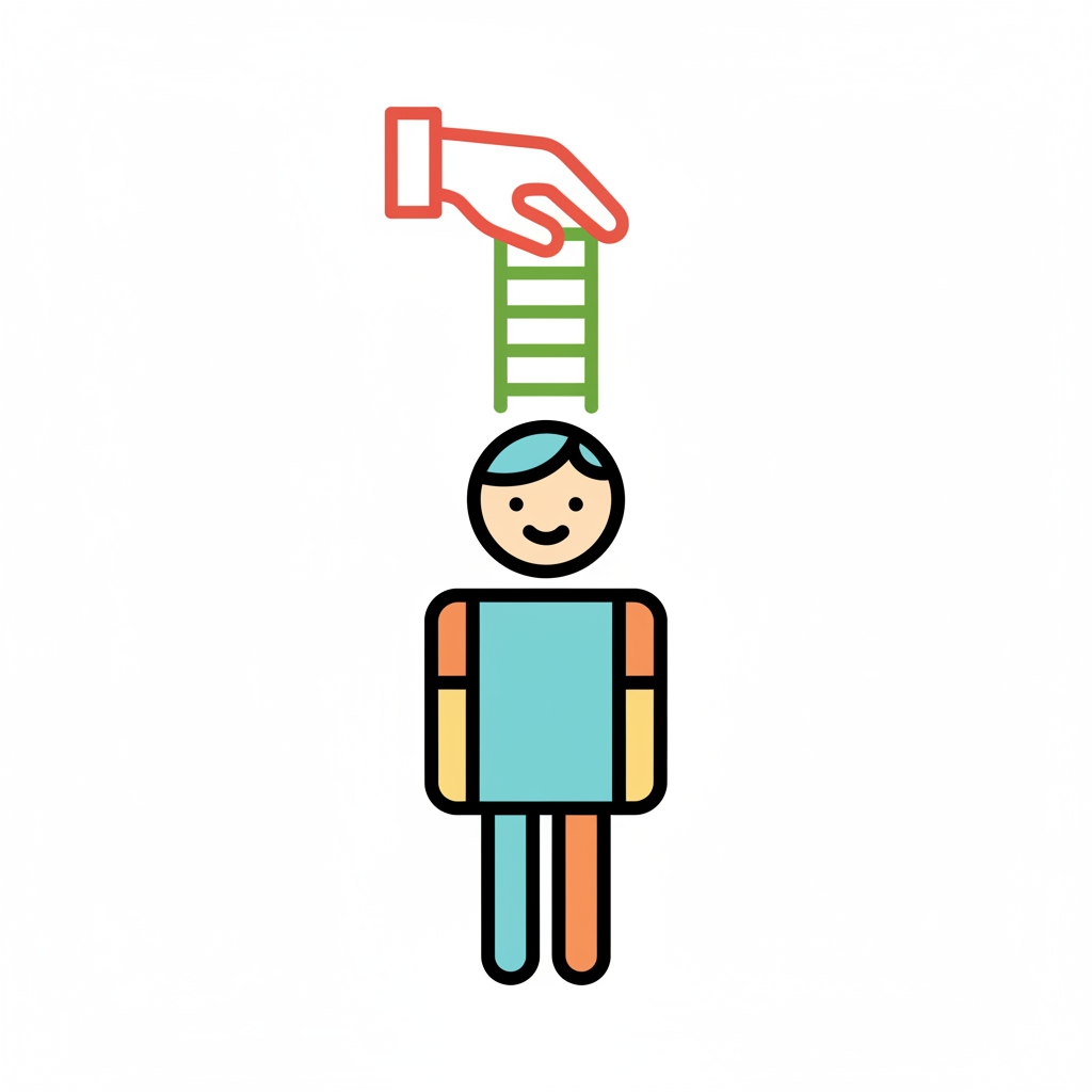 Eine Hand hält eine Leiter über dem Kopf einer stilisierten Person.