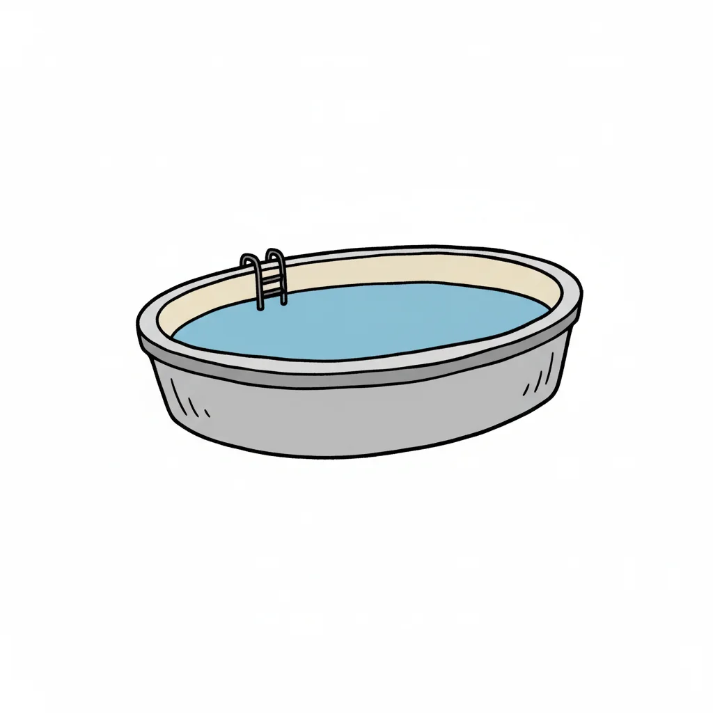 Cartoon-Illustration eines ovalen Schwimmbeckens mit blauem Wasser und Leiter auf weißem Grund.