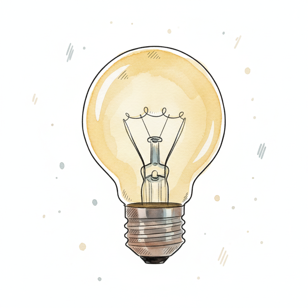 Handgezeichnete, leuchtende Glühbirne im Aquarellstil, symbolisiert eine Idee.
