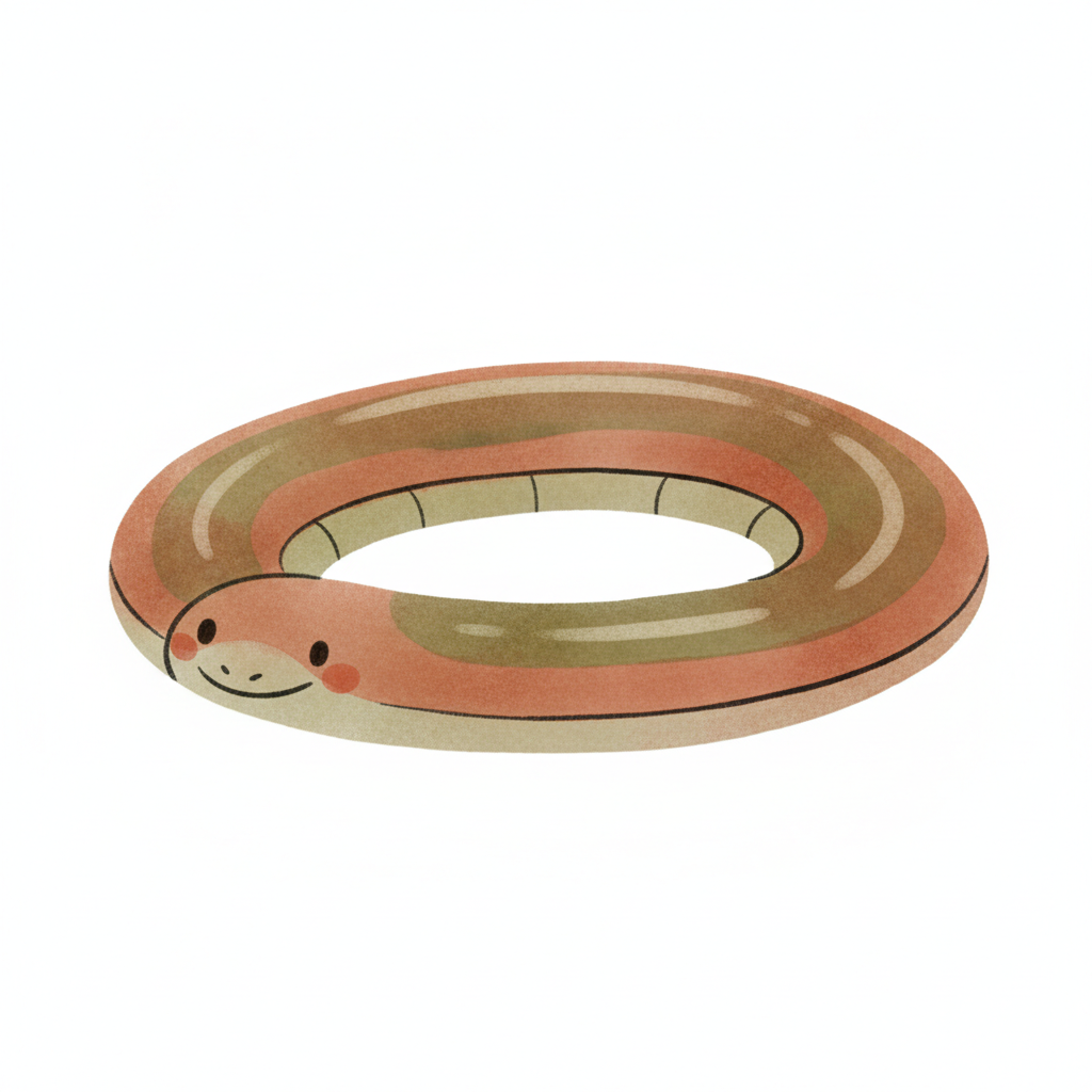 Ein lustiger, cartoonartiger Ring in Schlangenform mit einem lächelnden Gesicht.