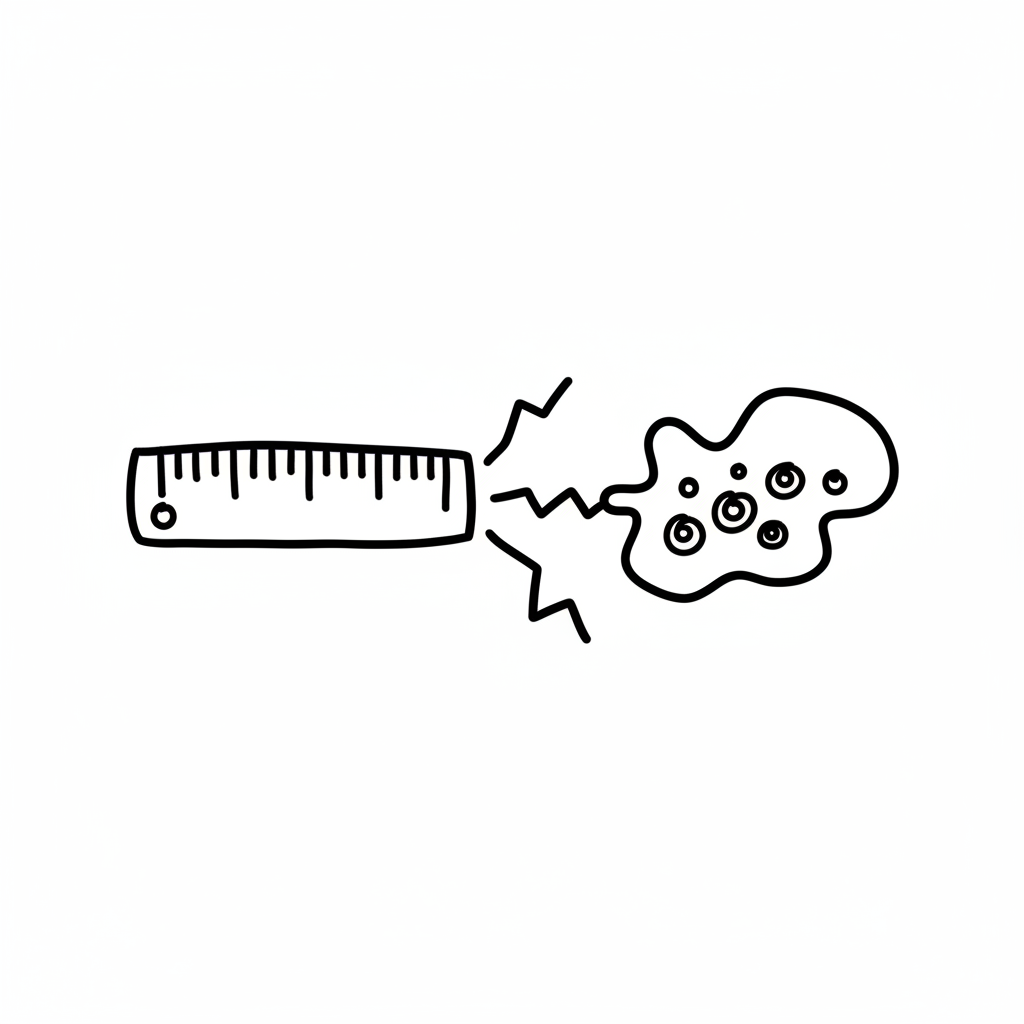 Strichzeichnung: Ein Lineal schießt eine Wolke aus Augen oder Zellen ab.