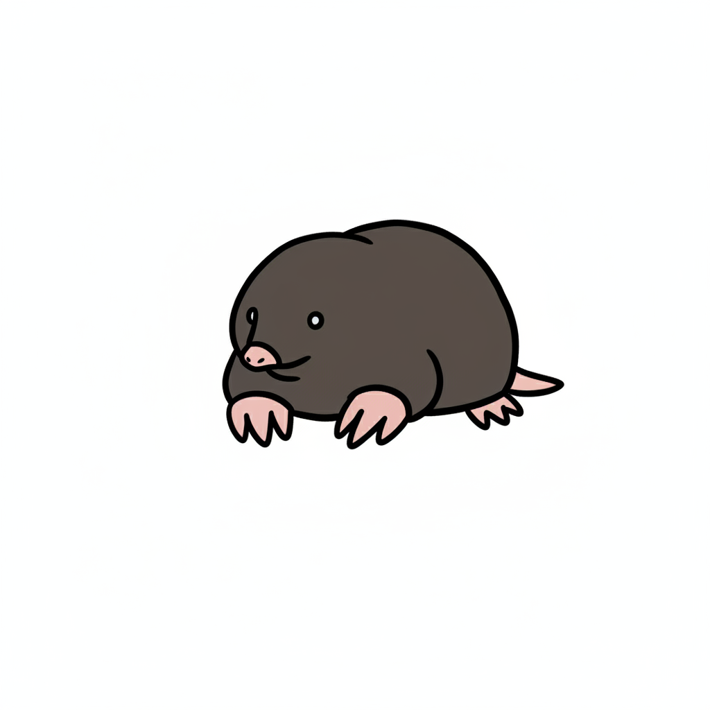 Ein niedlicher Cartoon-Style Maulwurf mit braunem Fell und großen Augen.