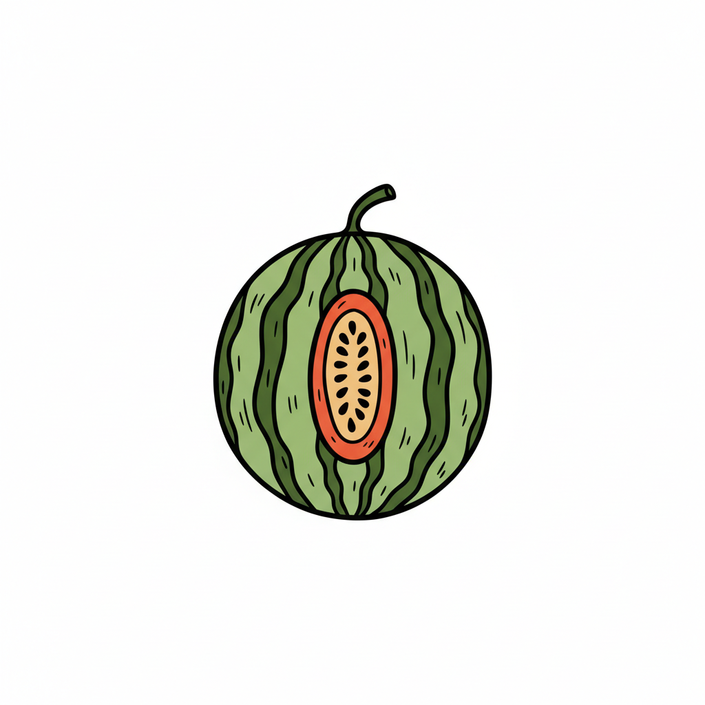 Illustration einer melonenähnlichen Frucht mit roten Wedges.