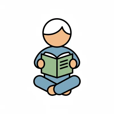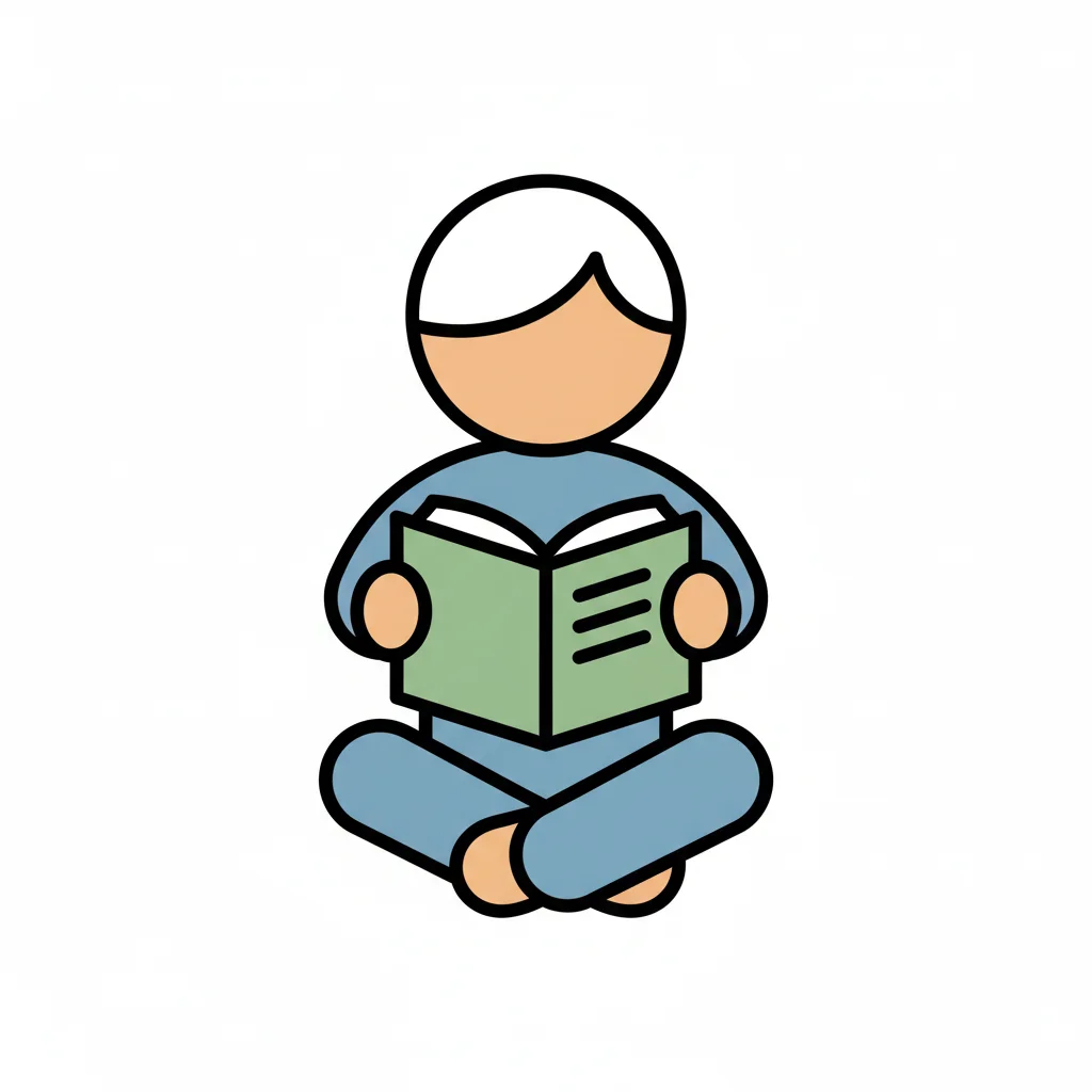Stilisierte Darstellung einer Person, die im Schneidersitz ein Buch liest.