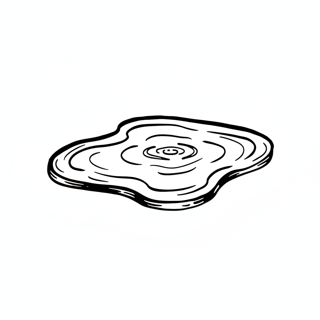 Eine skizzenhafte Darstellung einer unregelmäßigen, runden Fläche.