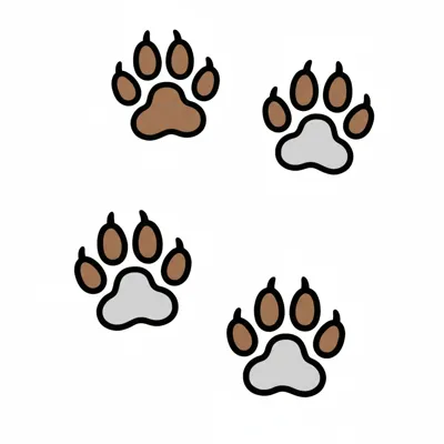 Ein einfacher, brauner Pfotenabdruck mit schwarzer Umrandung auf weißem Hintergrund.