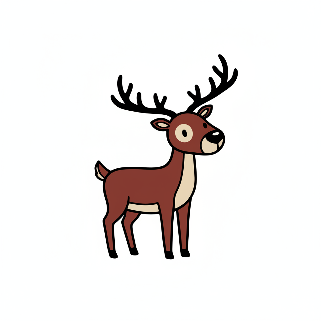 Ein cartoonhaftes Rentier mit großen Hörnern und freundlichem Ausdruck.
