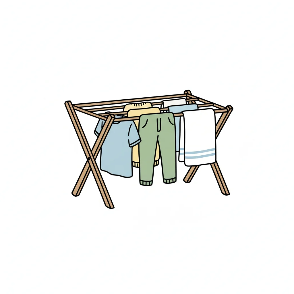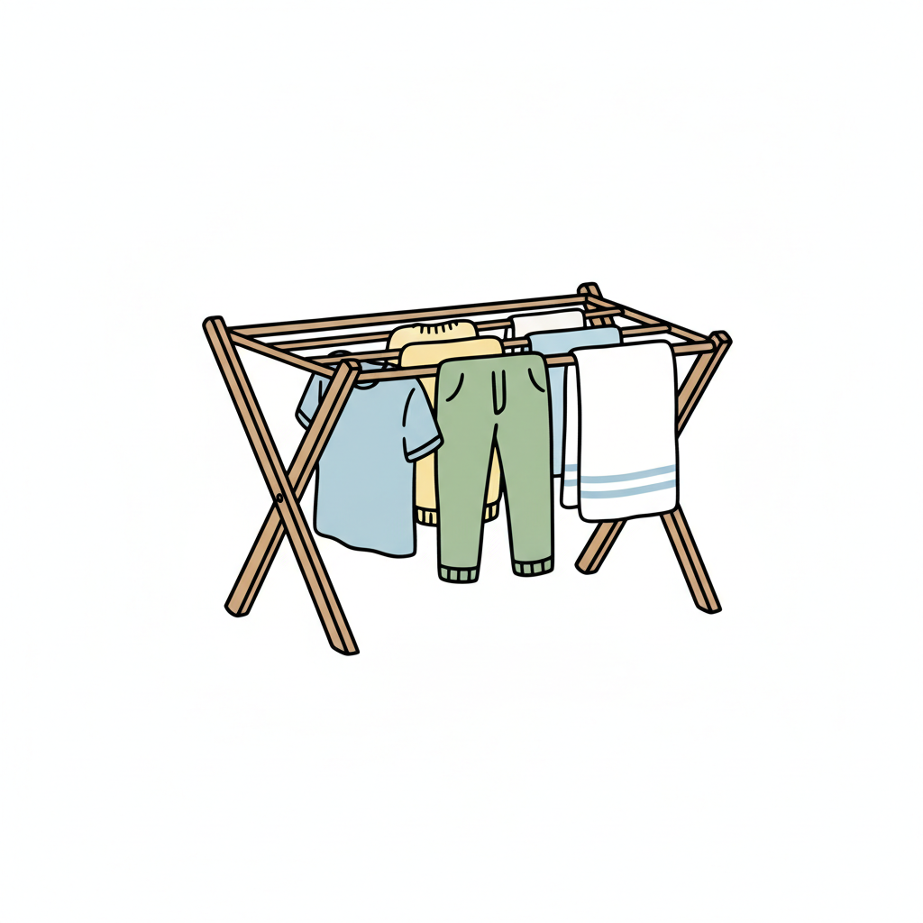 Ein Wäschetrockner mit Kleidungsstücken und einem Handtuch.