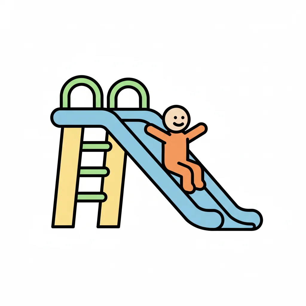 Ein Junge rutscht fröhlich eine Rutsche hinunter.