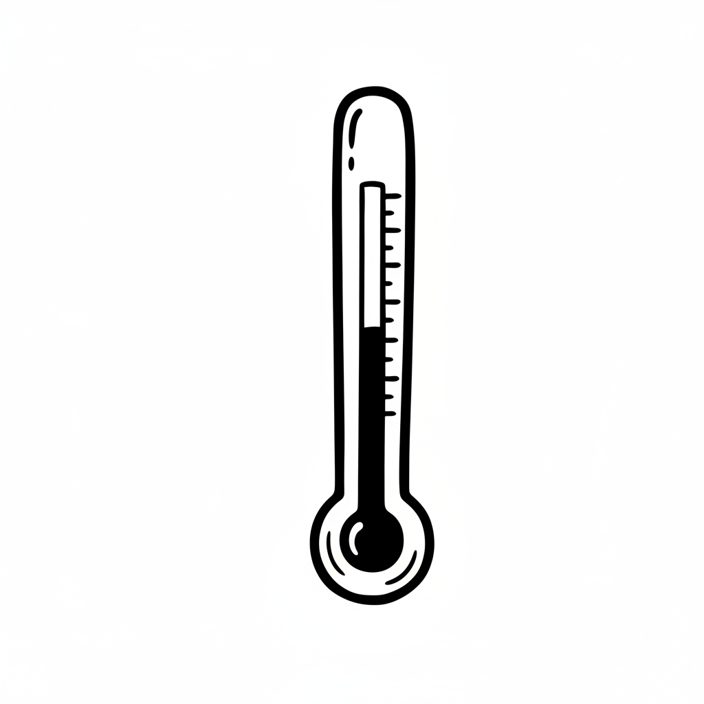 Schwarz-weiße Doodle-Illustration eines Thermometers mit halbvoller Flüssigkeitssäule.
