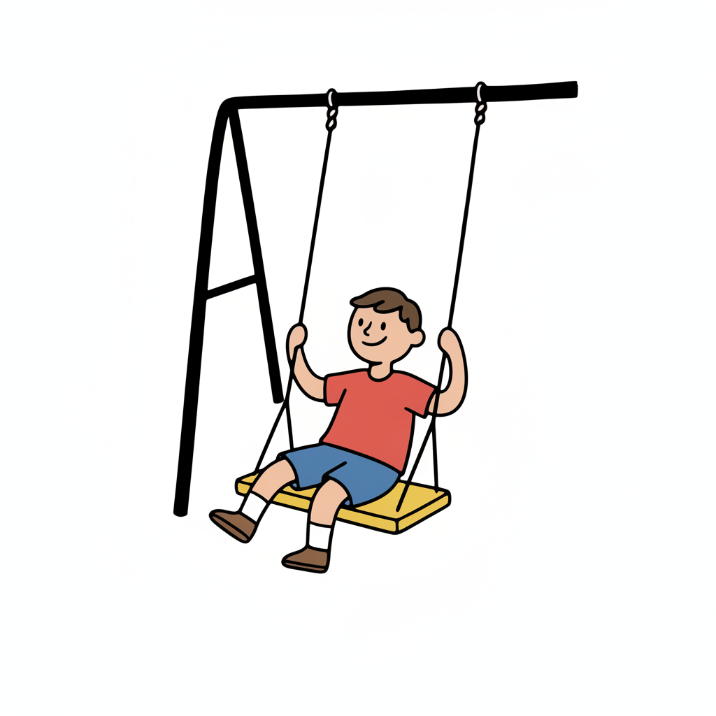 Ein Junge schwingt fröhlich auf einer Schaukel im Freien.