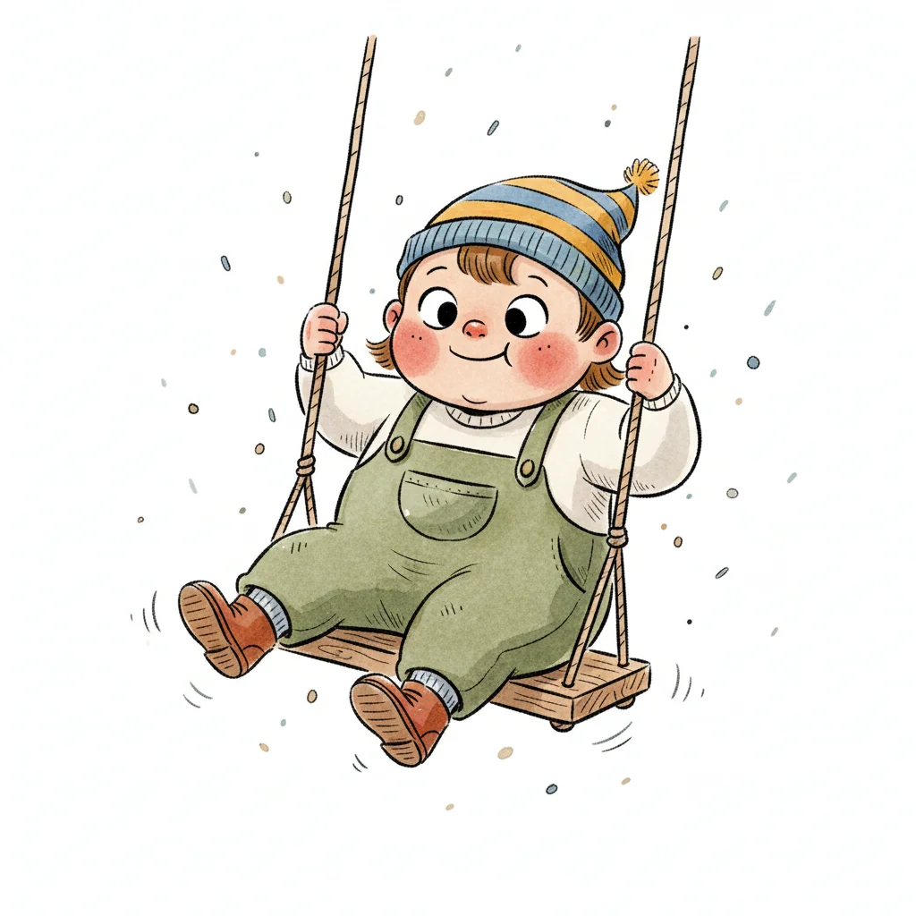 Ein fröhliches Kind schwingt auf einer Schaukel und trägt eine Mütze.