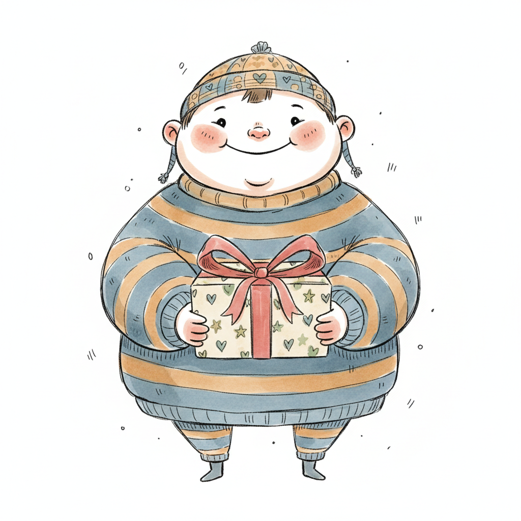 Niedliche, kindgerecht illustrierte Szene mit einem Kind oder einer Person als Hauptfigur, vor rein weißem Hintergrund, im frech-nordischen Aquarell-Skizzenstil. Klare, leicht wackelige Tuschekonturen, sichtbare Pinsel- und Strichtextur, dezente Schraffuren, weiche handgemalte Farbflächen in gedeckten Farben. Einfache, runde Formen. Keine harten Schatten, sondern sanfte, transparente Aquarellschichten. Leicht raue, handgezeichnete Linien statt glatter Vektorkanten. Subtile, vereinzelte Kritzelpunkte oder kleine Details im Hintergrund (wie Pünktchen oder feine Striche), aber keine echte Umgebung oder Landschaft. Die Figur ist mittig zentriert. Insgesamt charmant, humorvoll, warm und handgemacht wirkend. WICHTIG: Das Bild darf ABSOLUT KEINEN TEXT, KEINE BUCHSTABEN und KEINE ZAHLEN enthalten.