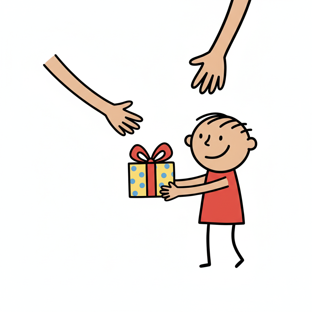 Ein Kind überreicht ein Geschenk mit Freude.