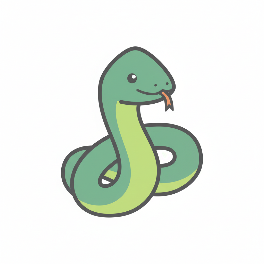 Eine cartoonhafte, grüne Schlange mit einem freundlichen Gesicht.
