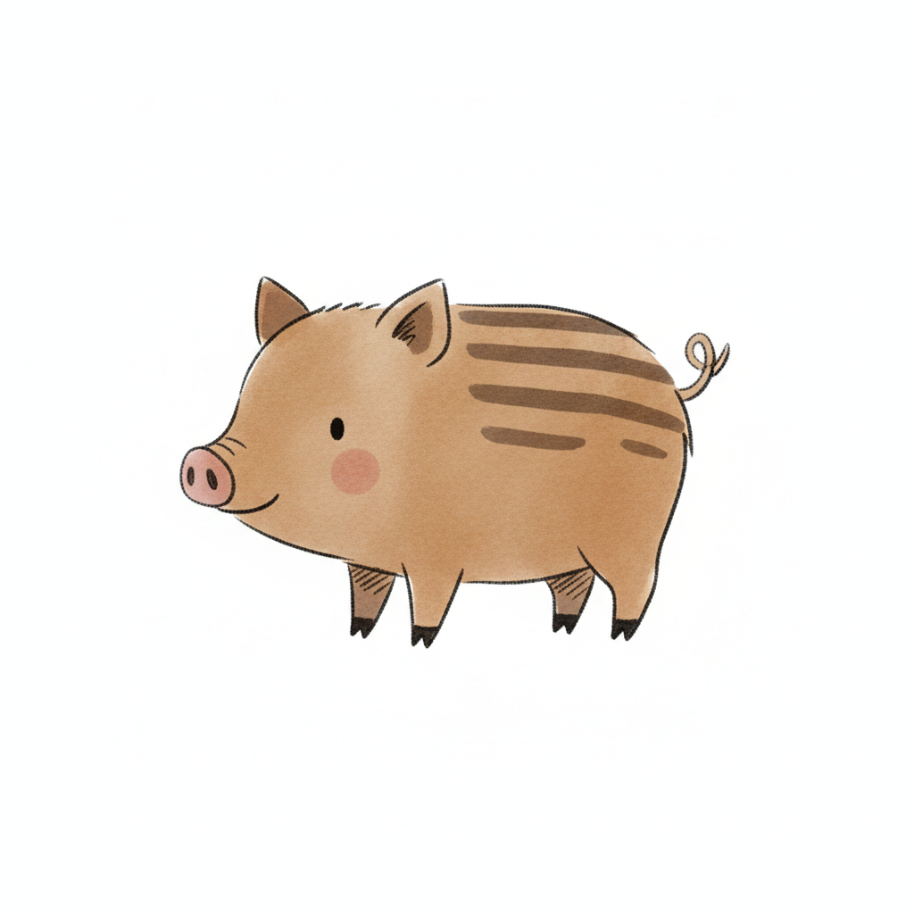 Ein einfaches, stilisiertes Schwein mit runden Formen und wenigen Details.