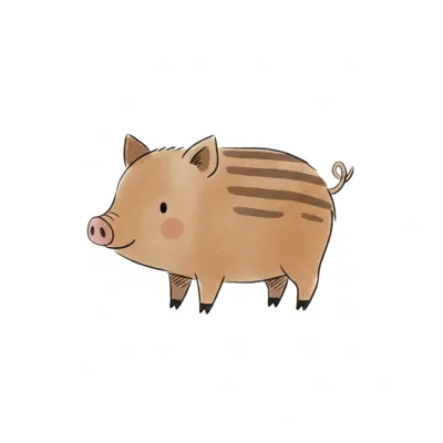 Eine niedliche, cartoonhafte Zeichnung eines Schweins.