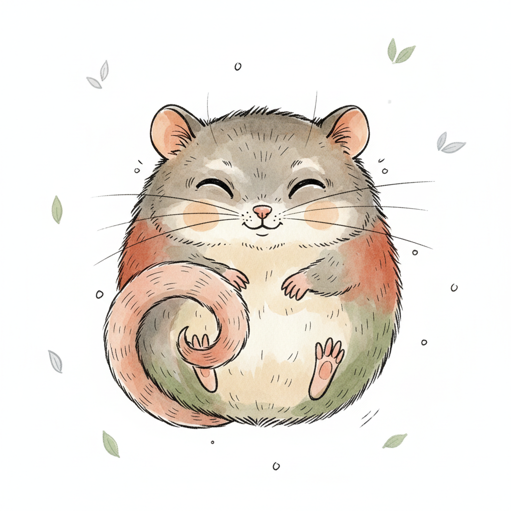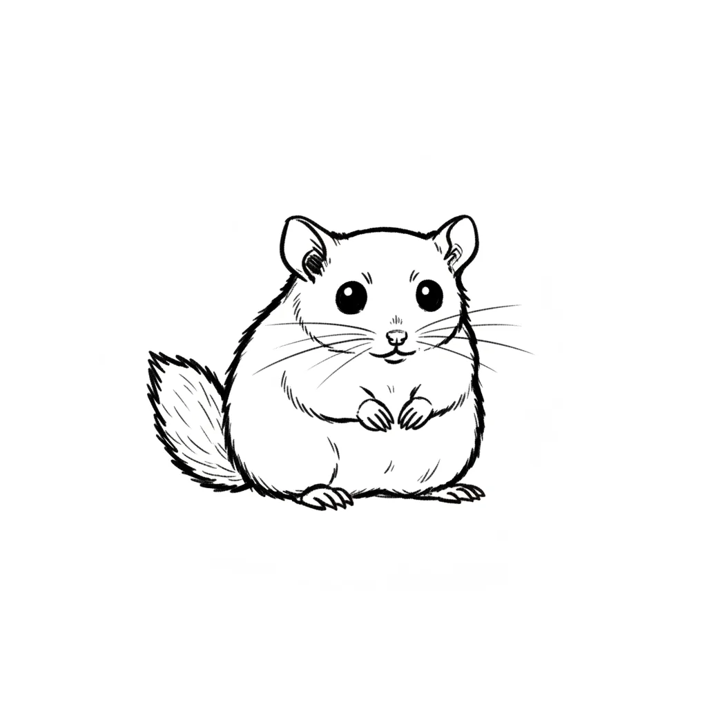 Ein niedliches, skizziertes Tier mit runden Augen und buschigem Schwanz.