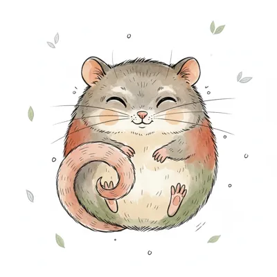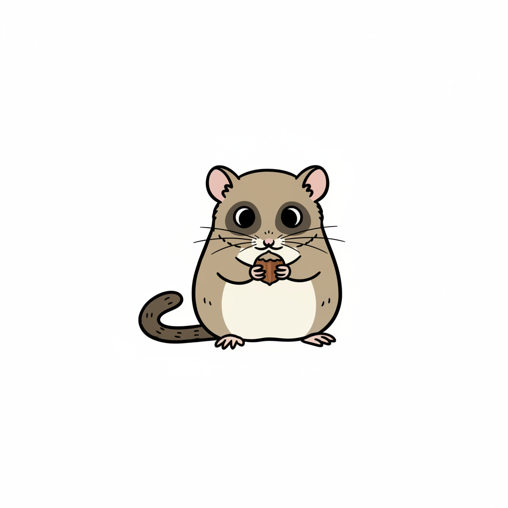 Eine niedliche Zeichnung eines kleinen Tieres, das eine Nuss hält.