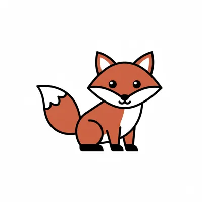 Ein süßer, sitzender Cartoon-Fuchs mit orangefarbenem Fell und weißen Akzenten.