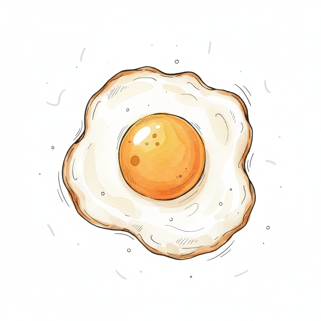 Illustration eines Spiegeleis mit gelbem Eigelb und weißem Rand.