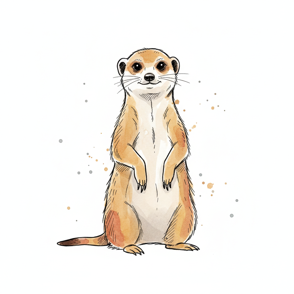 Niedliche Erdmännchen-Illustration in Aquarell- und Skizzenstil, aufrecht stehend mit leichtem Lächeln.
