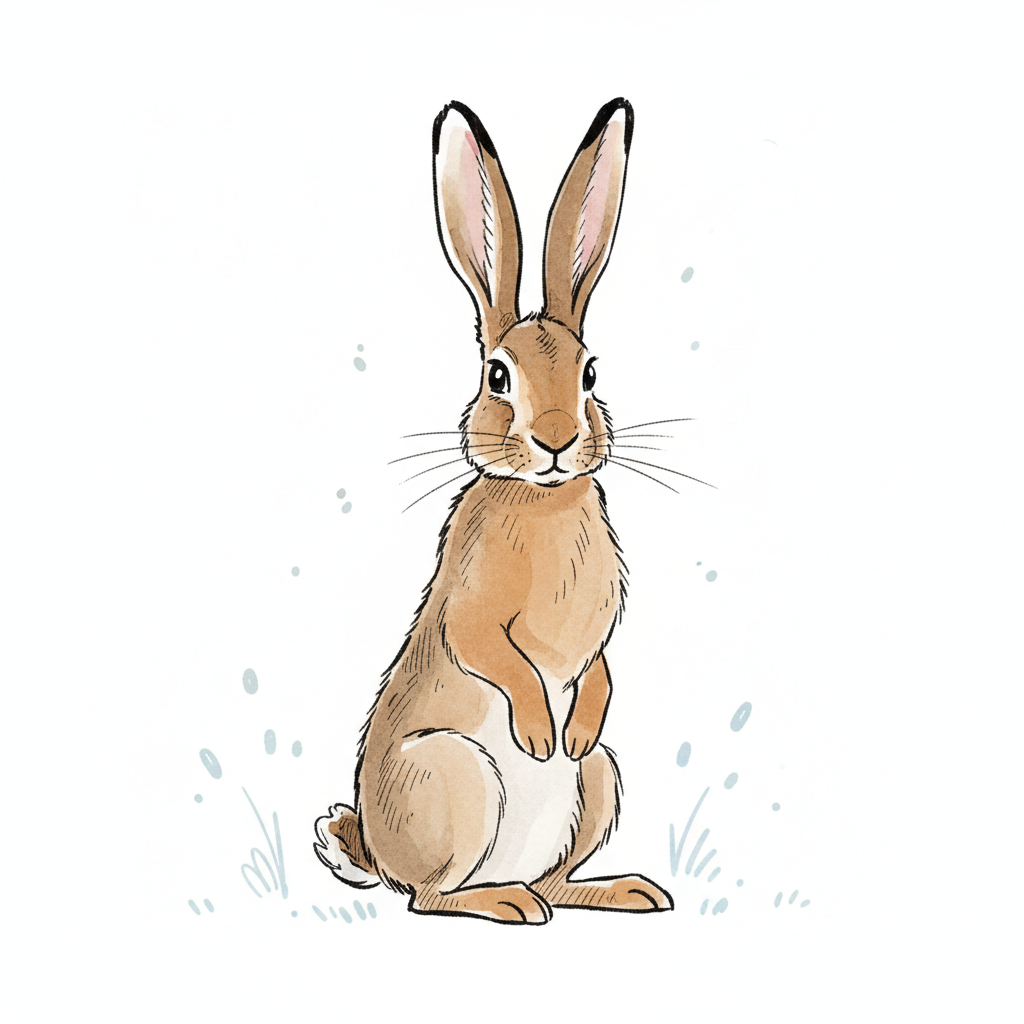 Niedliche Illustration eines aufrecht stehenden Hasen mit braunem Fell und langen Ohren.