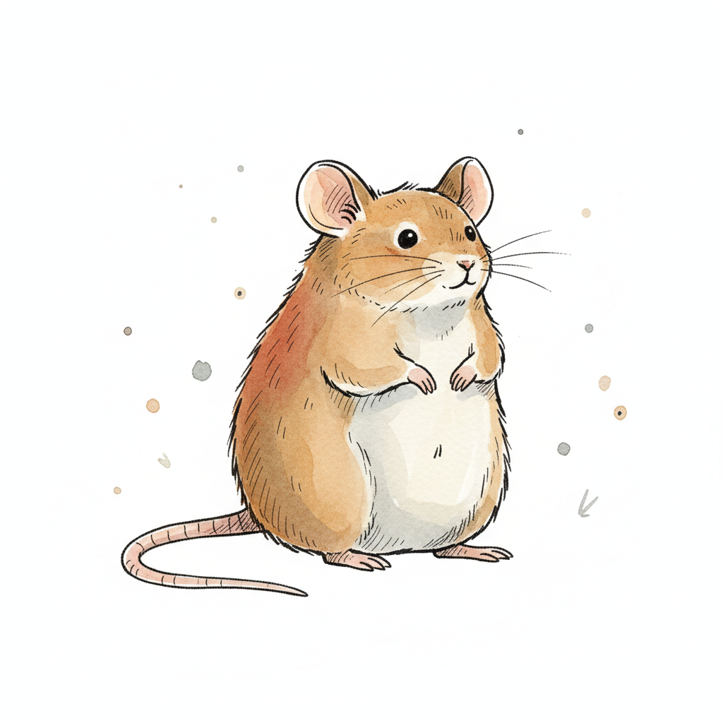 Niedliche, braune Maus in Aquarell-Illustration, auf den Hinterbeinen stehend.