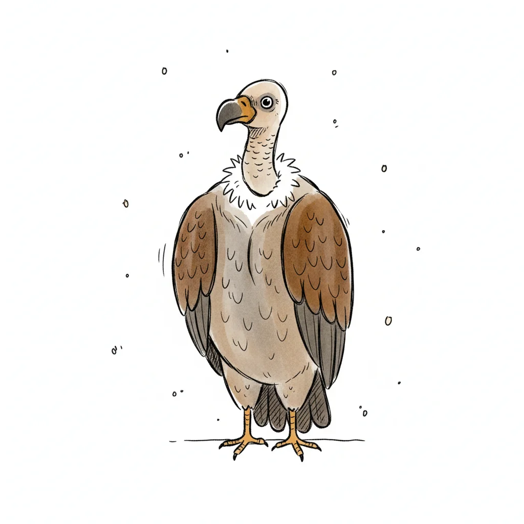 Illustration eines stehenden Geiers mit braunen Flügeln und hellem Gefieder im Cartoon-Stil.