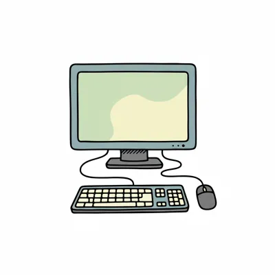 Ein gezeichneter Computer mit Tastatur und dekorativen Elementen.