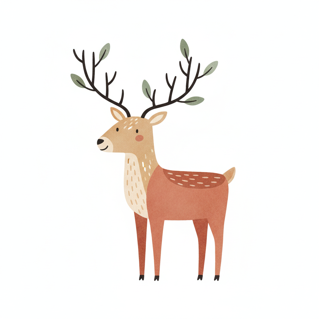 Ein stilisierter Hirsch mit grünen Ästen und einem braun-beigen Farbton.