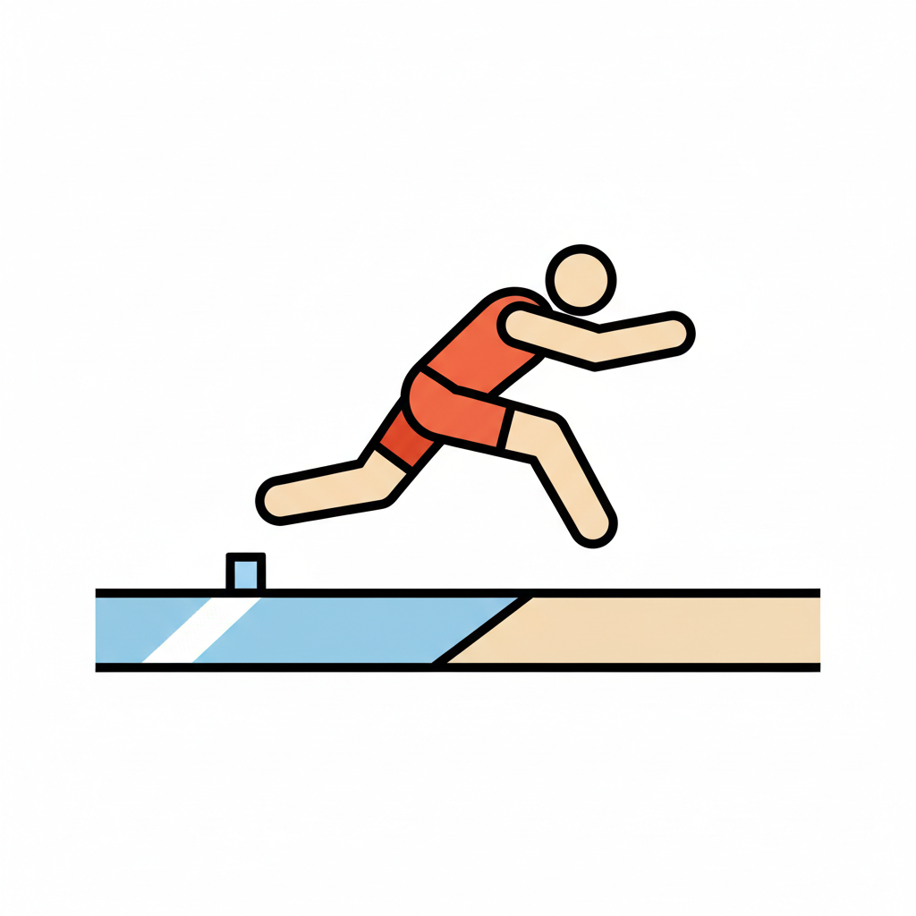 Stilisierte Darstellung eines Athleten beim Weitsprung oder Hürdenlauf auf einer Bahn.