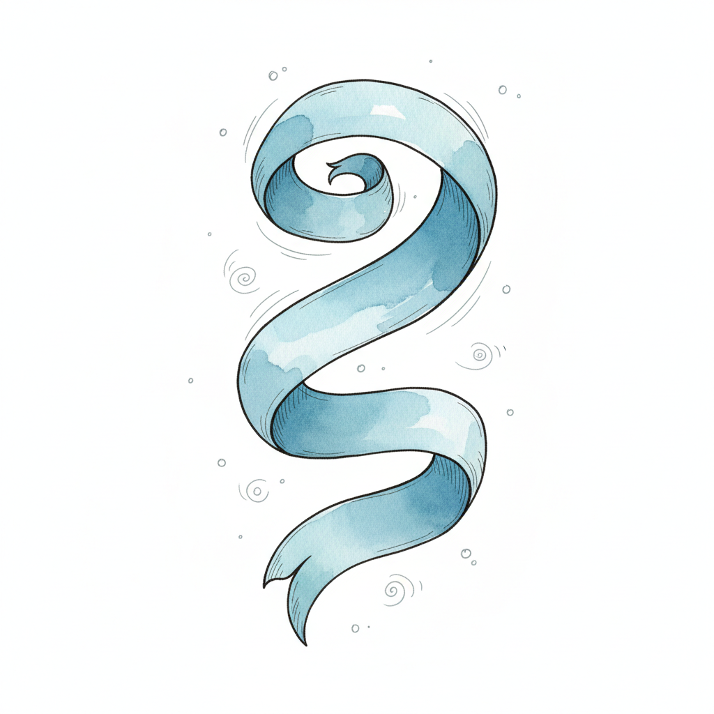 Eine lockige, stilisierte blaue Schleife mit sanften Wassertönen.