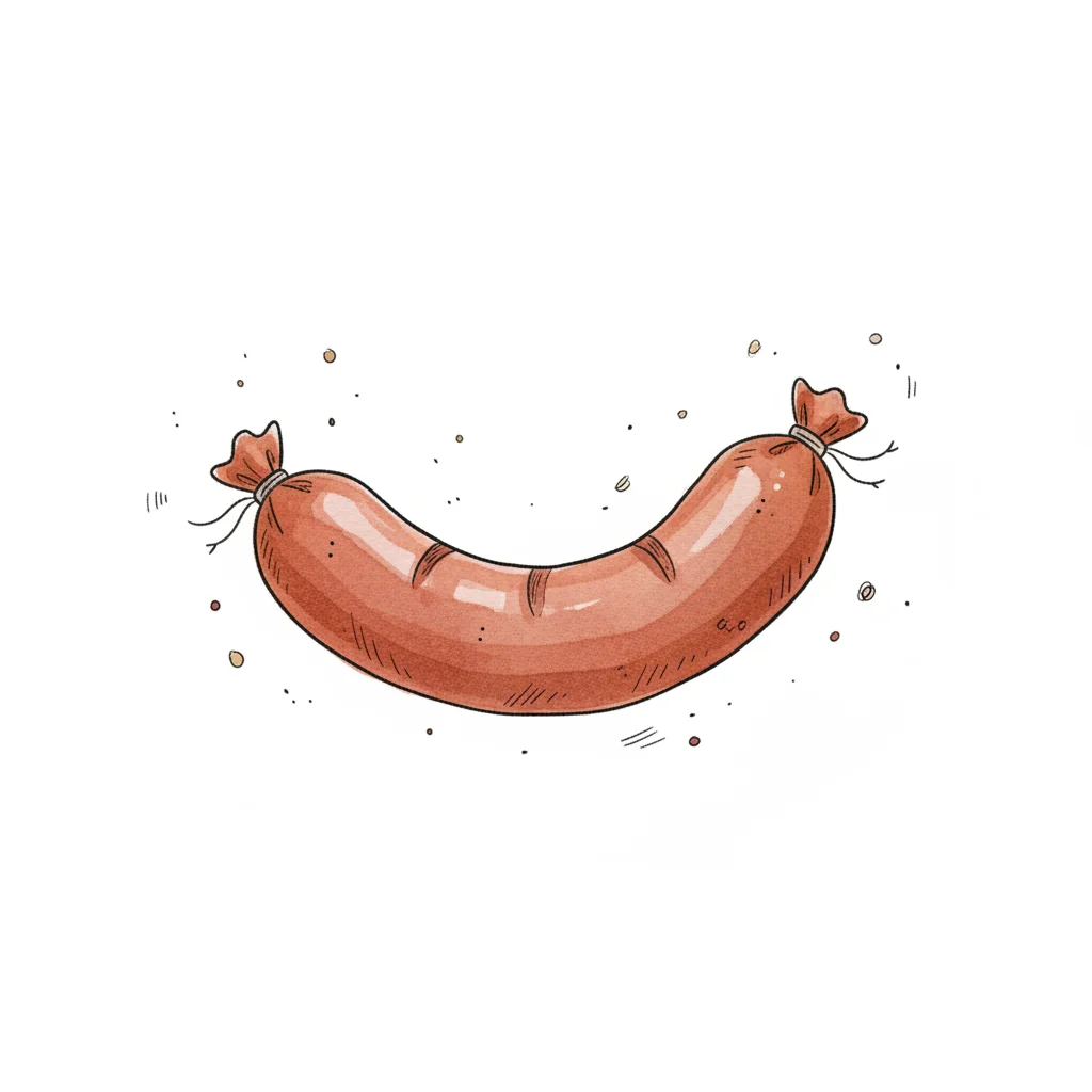 Eine gezeichnete Wurst mit dicken Enden auf weißem Hintergrund.