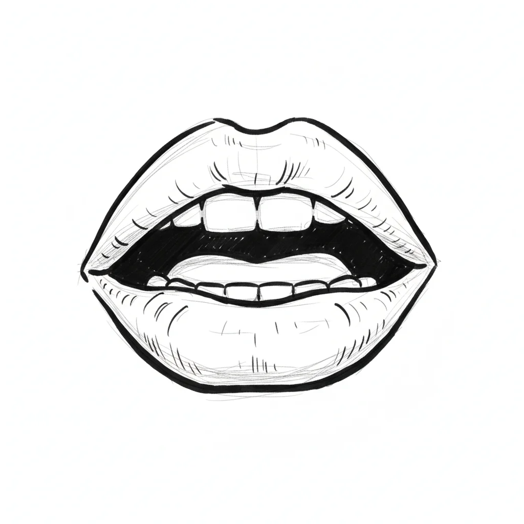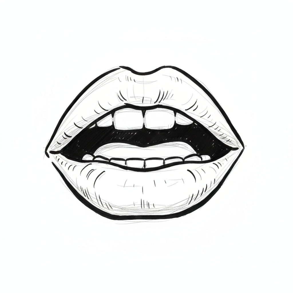 Illustration eines offenen Mundes mit sichtbaren Zähnen.