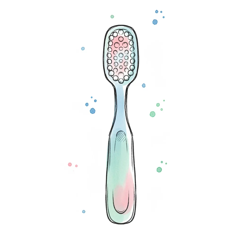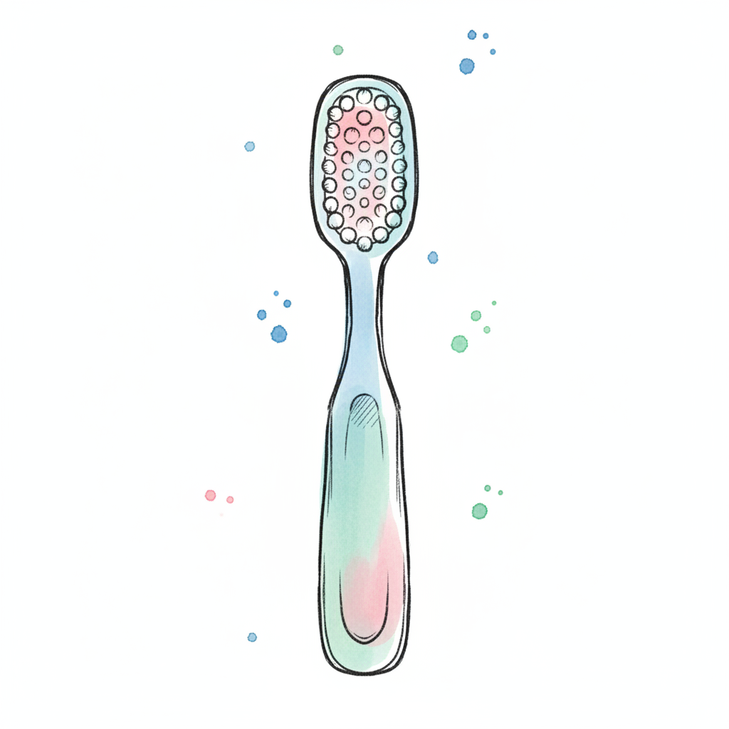 Eine farbenfrohe Zahnbürste mit kreisförmigen Borsten.