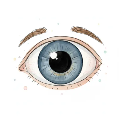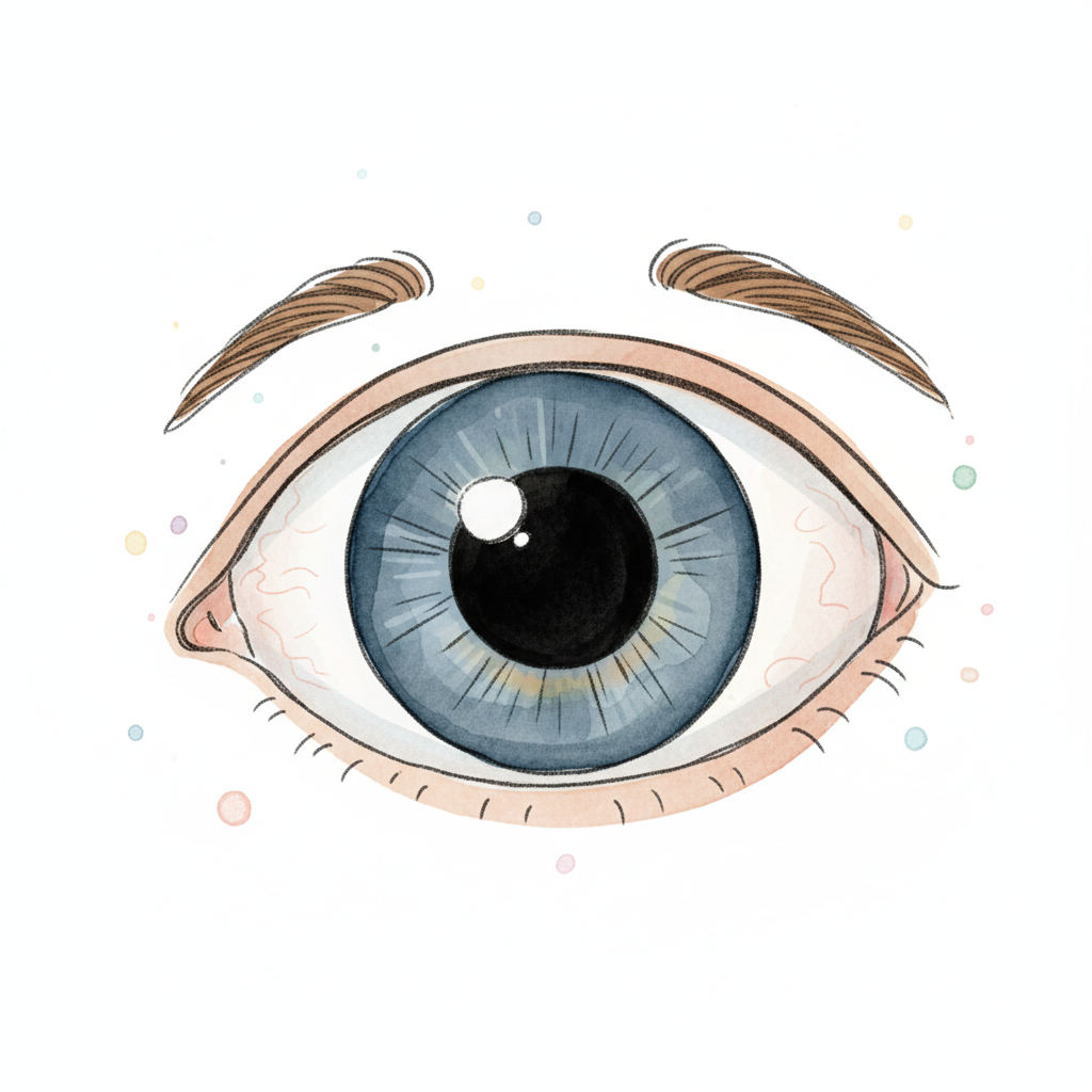 Illustriertes Auge mit blauer Iris und feinen Details.