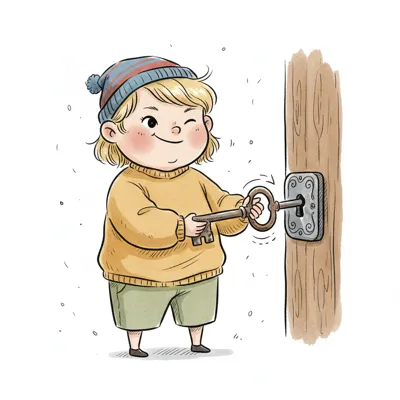 Ein Junge mit Schlüssel versucht, eine Tür zu öffnen.