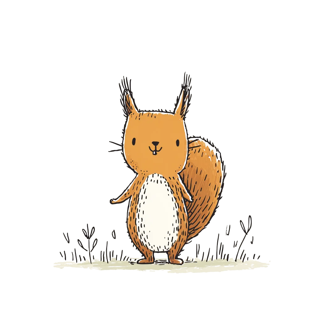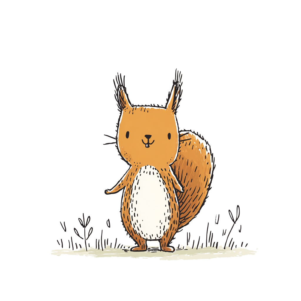 Ein niedliches, illustriertes Eichhörnchen mit orangefarbenem Fell.