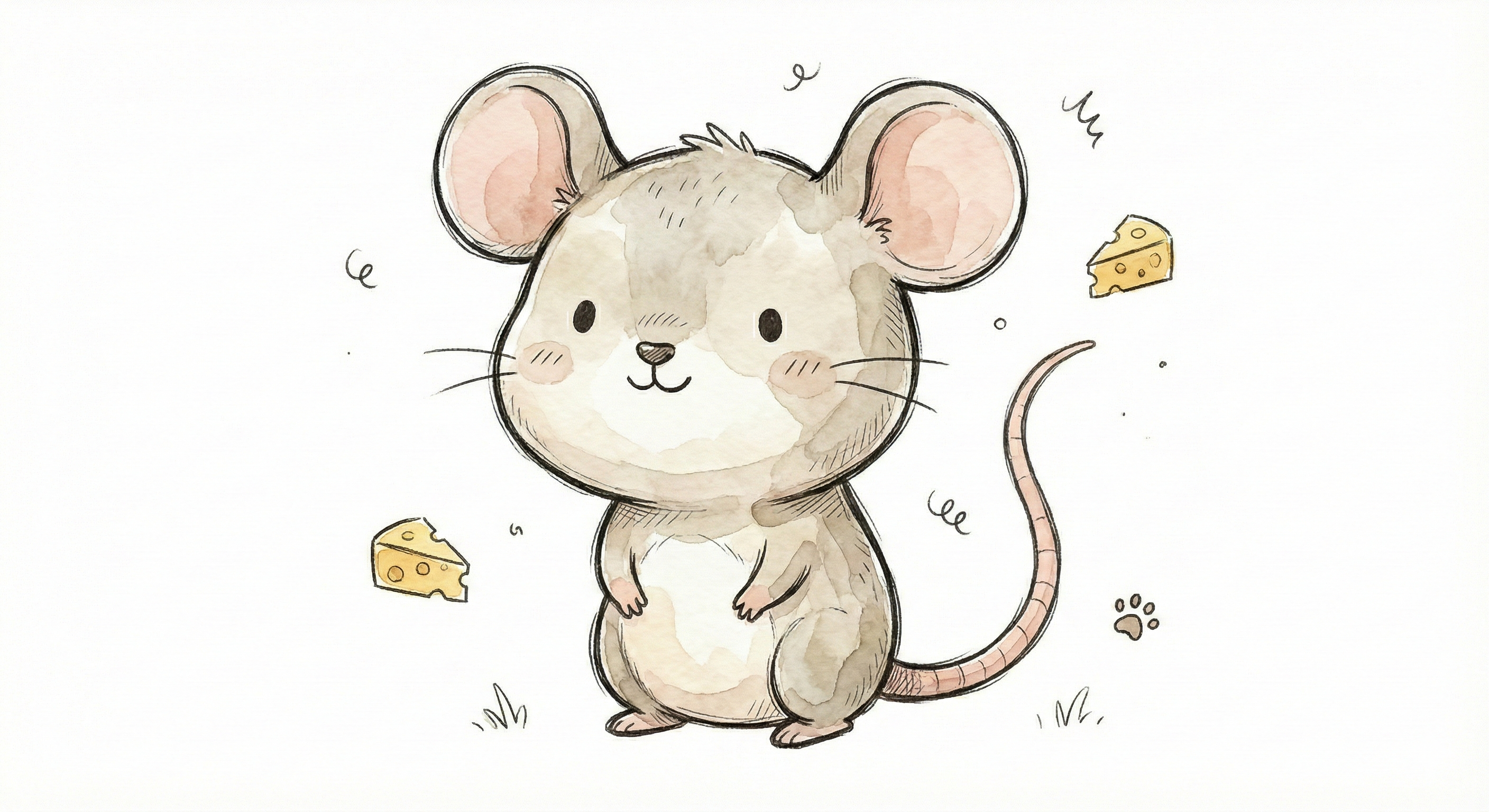Eine niedliche Maus mit Käse in einem verspielt-künstlerischen Stil.