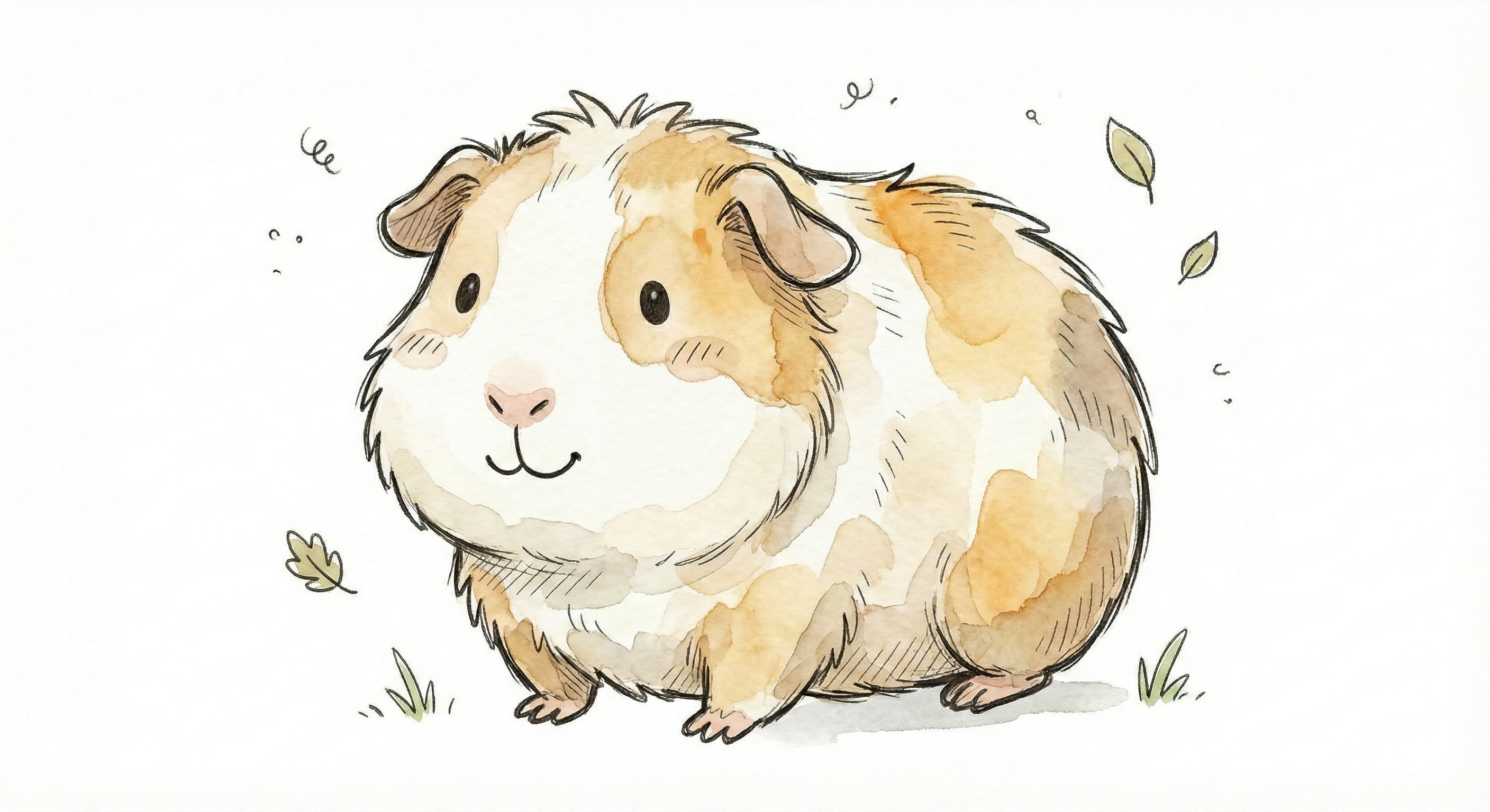 Ein niedliches, gezeichnetes Meerschweinchen mit braunen und weißen Flecken.