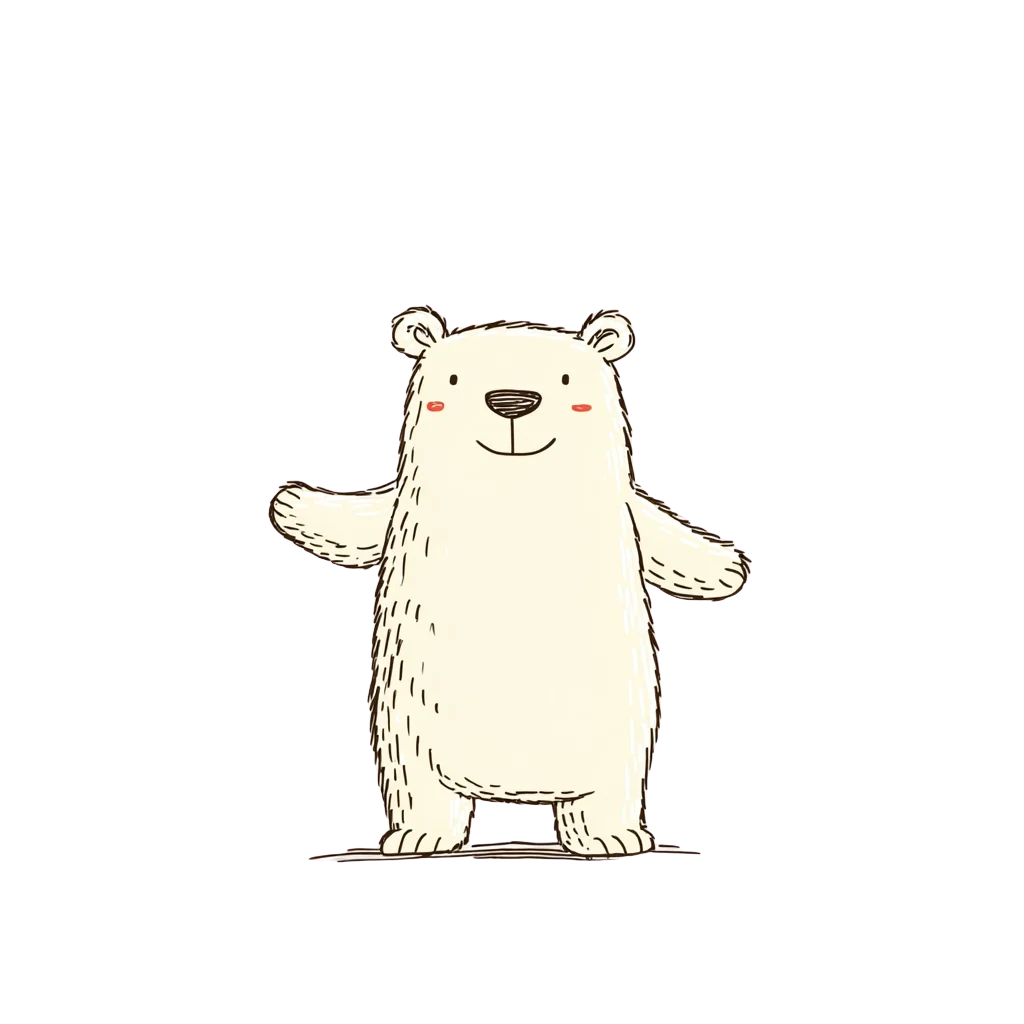 Ein niedlicher, cartoonartiger Bär mit einem freundlichen Lächeln.