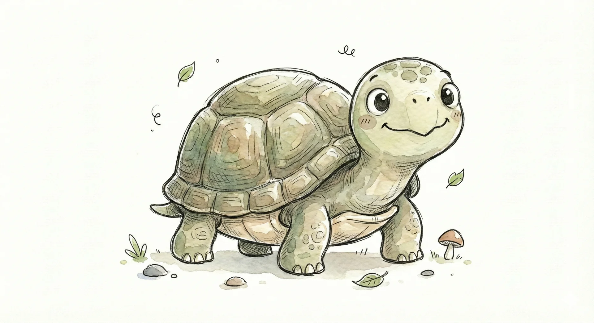 Eine süße, cartoonartige Schildkröte mit einem freundlichen Gesicht.