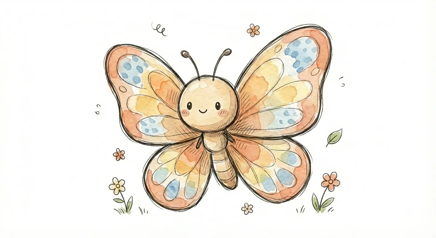 Ein süßer, bunter Schmetterling mit einem lächelnden Gesicht.