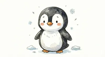 Ein niedlicher, cartoonartiger Pinguin im Schnee.