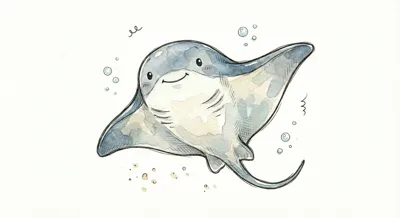 Ein niedlicher Rochen schwimmt glücklich im Wasser.
